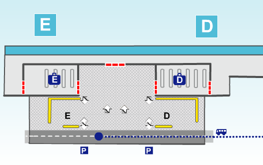 2号terminal,出口只有一个吧,到法兰机场火车站,转bus shuttle到termine 2,或者从termine1的2楼坐sky line到termine2的4楼 (地图上这么显示,偶没去过)