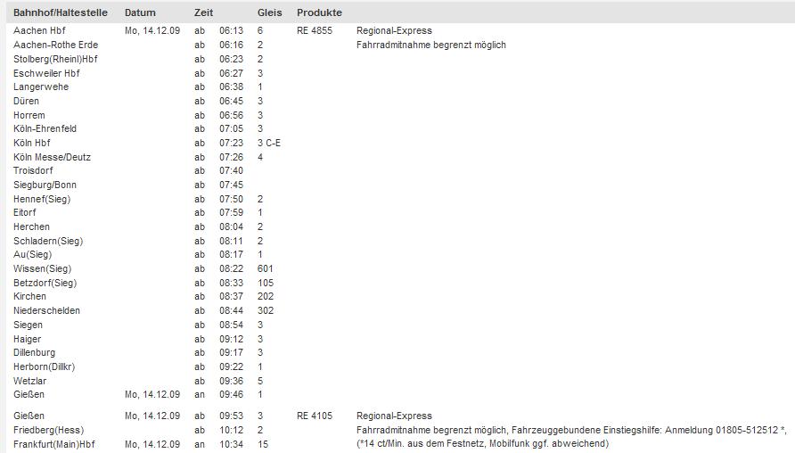 途径以下主要城市 亚琛, Dueren, 科隆, Siegen, Giessen.