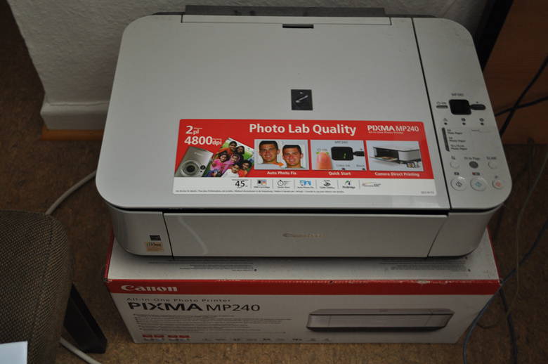 Canon彩色打印机MP240, 送USB线一条, 可扫描, 还有少量黑色墨, 从未使用过第三方墨盒或者灌墨, 喷嘴质量完好.[10欧]