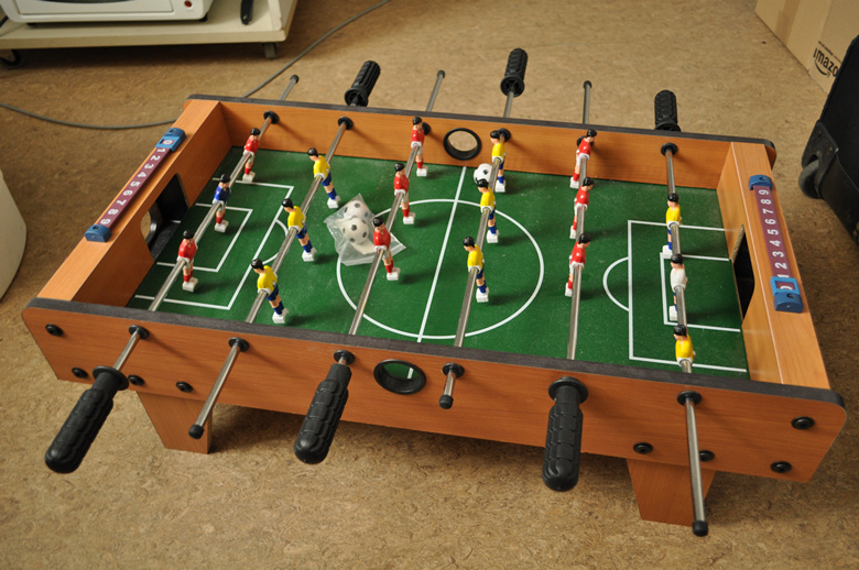小型桌上足球(1米长), 木质框架, 完好无损, 带3个球 (看这颜色刚好是拜仁对BVB啊有木有! 先预演一下吧亲!)